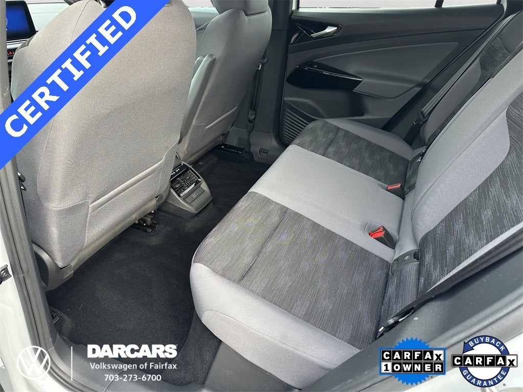 CARFAX One-Owner. ID.4 Pro, 4D Sport Utility, Electric Motor, Single-Speed Automatic, RWD, White, Lunar Gray w/Perforated V-Tex Leatherette Seating Surfaces, 4 Wheel Independent Suspension, 7 Speakers, ABS brakes, Active Cruise Control, Alloy wheels, Auto High-beam Headlights, Automatic temperature control, Brake assist, Emergency communication system: VW Car-Net services (capabilities require enrollment or subscription), Exterior Parking Camera Rear, Four wheel independent suspension, Front dual zone A/C, Fully automatic headlights, Heated door mirrors, Heated Front Seats, Low tire pressure warning, Navigation System, Panic alarm, Power driver seat, Power steering, Radio: Discover Pro w/10 Touchscreen Navigation, Rain sensing wipers, Rear window wiper, Remote keyless entry, Split folding rear seat, Steering wheel mounted audio controls, Telescoping steering wheel, Tilt steering wheel, Turn signal indicator mirrors, Variably intermittent wipers, Wheels: 19 5-Spoke 2-Tone Machined Alloy. Certified.