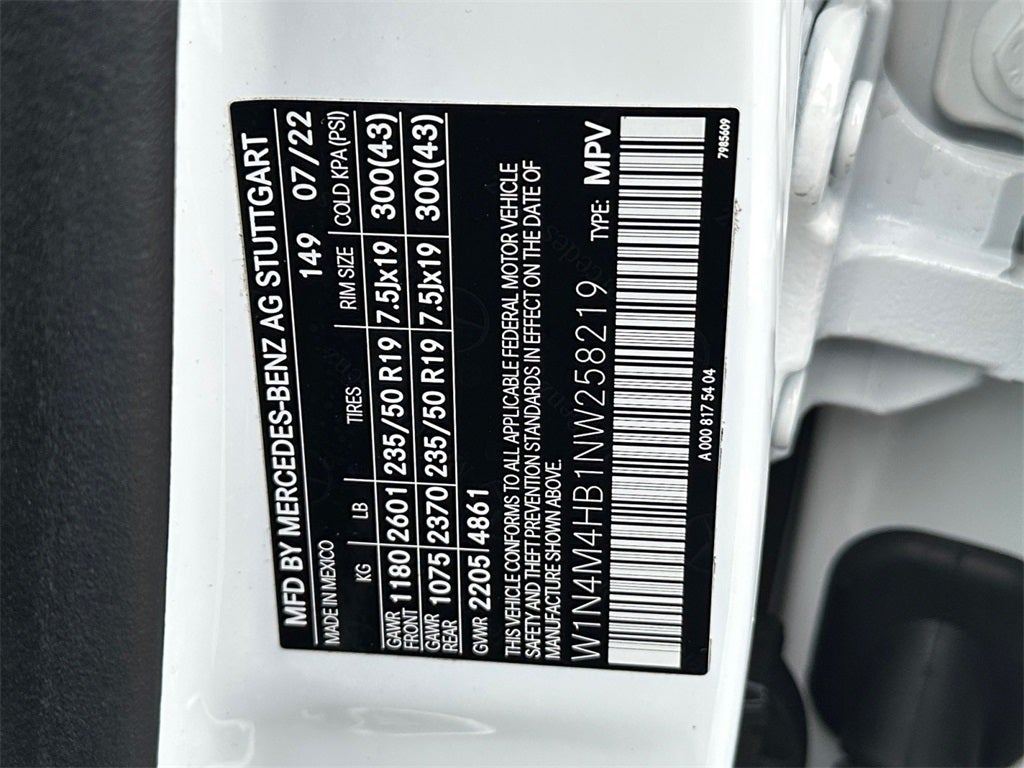 CARFAX One-Owner. 10.25 Digital Instrument Cluster, 10.25 Media Display w/Touchscreen, 115V Outlet, 4-Wheel Disc Brakes, 8 Speakers, 8-Way Power Front Comfort Seats, ABS brakes, Active Parking Assist, Air Conditioning, Alloy wheels, AM/FM radio, Apple CarPlay®/Android Auto®, Augmented Video for Navigation, Auto-Dimming Rearview & Driver-Side Mirrors, Automatic temperature control, Axle Ratio: TBD, Brake assist, Bumpers: body-color, Child-Seat-Sensing Airbag, Delay-off headlights, Driver door bin, Driver vanity mirror, Dual front impact airbags, Dual front side impact airbags, Electronic Stability Control, Emergency communication system: Mercedes-Benz Emergency Call Service, Exterior Parking Camera Rear, First Aid Kit, Four wheel independent suspension, Front anti-roll bar, Front Bucket Seats, Front Center Armrest, Front dual zone A/C, Front reading lights, Fully automatic headlights, Heated door mirrors, Heated Front Seats, Heated Steering Wheel, Illuminated entry, KEYLESS GO®, Knee airbag, Low tire pressure warning, MB Navigation, MB-Tex Upholstery, Memory seat, Multifunction Steering Wheel in Leather, Multimedia Package, Occupant sensing airbag, Outside temperature display, Overhead airbag, Overhead console, Panic alarm, Panorama Roof, Parking Assistance Package, Passenger door bin, Passenger vanity mirror, Power door mirrors, Power driver seat, Power Folding Side Mirrors, Power Liftgate, Power passenger seat, Power steering, Power windows, Premium audio system: MBUX, Premium Package Lite, Radio data system, Radio: Mercedes-Benz User Experience (MBUX), Rain sensing wipers, Rear anti-roll bar, Rear fog lights, Rear reading lights, Rear window defroster, Rear window wiper, Remote keyless entry, Roof rack: rails only, Security system, Smartphone Integration, Speed control, Speed-sensing steering, Split folding rear seat, Spoiler, Steering wheel mounted audio controls, Surround View System, Tachometer, Telescoping steering wheel, Tilt steering wheel, Traction control, Traffic Sign Assist, Trip computer, Turn signal indicator mirrors, Variably intermittent wipers, Wheels: 7.5J x 19 10-Spoke w/Matte Black Accents.