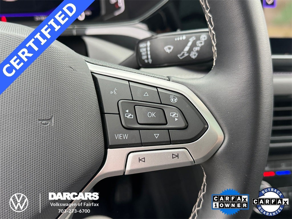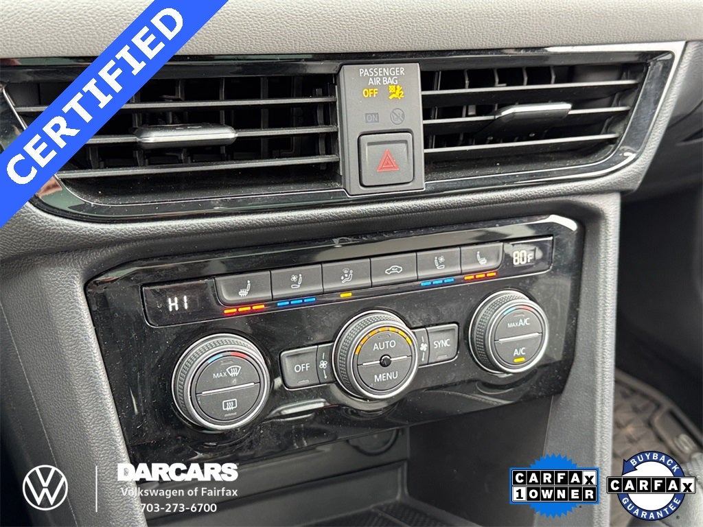 Taos 1.5T SEL, 4D Sport Utility, 1.5L I4 Turbocharged DOHC 16V LEV3-SULEV30 158hp, 7-Speed DSG Automatic with Tiptronic, AWD, Deep Black Pearl, Gray/Black w/Perforated Vienna Leather Seating Surfaces, 9 Speakers, Active Blind Spot Monitor, Active Cruise Control, AM/FM radio: SiriusXM with 360L, Auto High-beam Headlights, Automatic temperature control, Brake assist, Electronic Stability Control, Exterior Parking Camera Rear, Four wheel independent suspension, Front dual zone A/C, Fully automatic headlights, Heated & Ventilated Front Comfort Sport Seats, Heated door mirrors, Heated front seats, Heated steering wheel, Leather Shift Knob, Low tire pressure warning, Navigation system: VW Car-Net Guide & Inform, Perforated Vienna Leather Seating Surfaces, Power door mirrors, Power driver seat, Power steering, Power windows, Radio: MIB3 Discover Media AM/FM/HD, Rain sensing wipers, Rear Parking Sensors, Rear window defroster, Speed control, Steering wheel mounted audio controls, Telescoping steering wheel, Tilt steering wheel, Variably intermittent wipers, Ventilated front seats, Wheels: 19 2-Tone Machined Alloy. Certified.