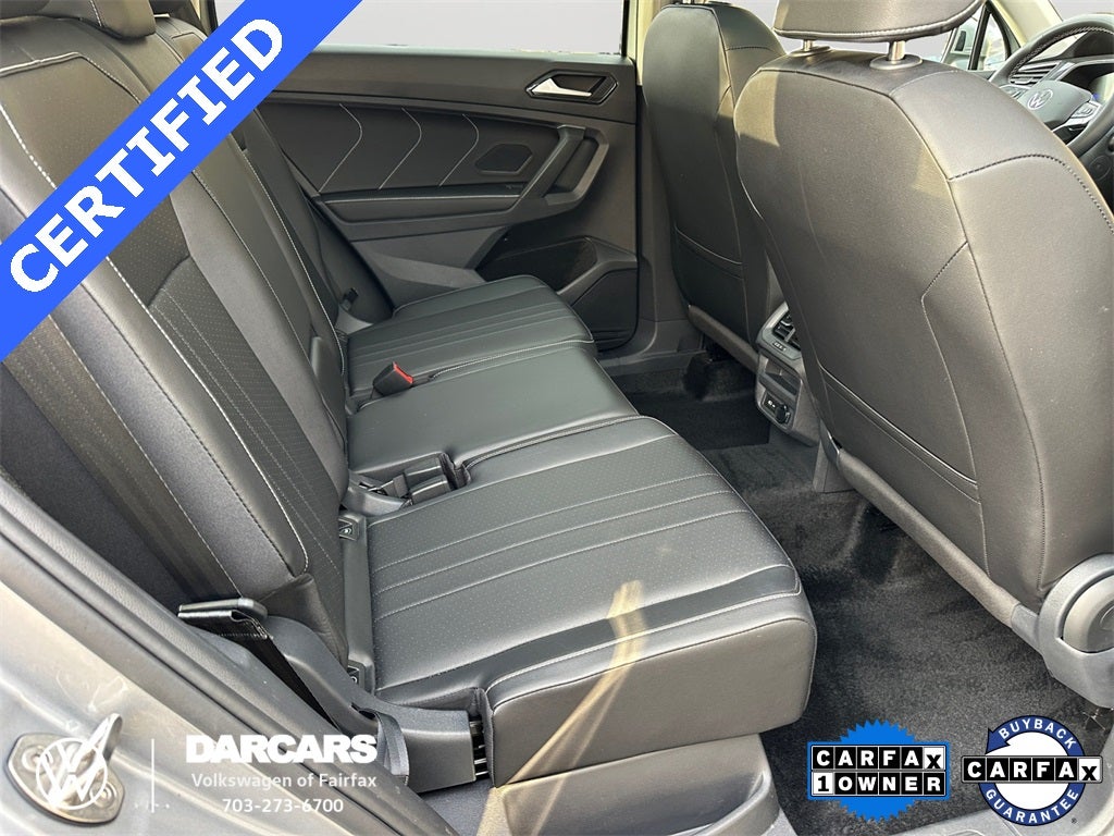 CARFAX One-Owner. Tiguan 2.0T SE, 4D Sport Utility, 2.0L TSI DOHC, 8-Speed Automatic with Tiptronic, AWD, Pyrite Silver Metallic, Titan Black w/Perforated V-Tex Leatherette Seating Surfaces, 4-Wheel Independent Suspension, 6 Speakers, Active Cruise Control, Alloy wheels, AM/FM radio: SiriusXM with 360L, Automatic temperature control, Brake assist, Delay-off headlights, Electronic Stability Control, Exterior Parking Camera Rear, Front dual zone A/C, Fully automatic headlights, Heated door mirrors, Heated front seats, Leather Shift Knob, Low tire pressure warning, Panoramic Sunroof Package, Perforated V-Tex Leatherette Seating Surfaces, Power door mirrors, Power driver seat, Power steering, Radio: MIB3 Composition Media AM/FM/HD, Rain sensing wipers, Rear window defroster, Rear window wiper, Remote keyless entry, Steering wheel mounted audio controls, Turn signal indicator mirrors. Certified.
